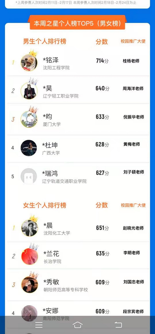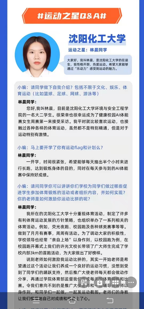 截至目前,全国共有150多所高校参加本次比赛。beat365官网至开赛以来前八周名次在团体赛中一直排在第一位。在第九周的个人比赛上,beat365官网环境与安全工程学院大二林晨同学在全国大学生健康校园大赛暨AI体能赛女子组中荣获第一名,被评为“运动之星”。林晨同学至比赛开始一直表现优秀,始终排在beat365官网前三名。经过长期不懈的努力与坚持,在第九周时,运动总积分不但在beat365官网男女综合排名第一,在全国的个人排名赛战中,以普通学生身份,战胜前八周多名创造优异成绩的高水平运动员。胜利的果实完全是凭借脚踏实地,长期坚持不懈,做好自己,始终如一的坚强品质拼搏出来的,实属难能可贵。