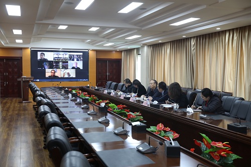 2月25日上午,beat365官网在校部第八会议室与美国匹兹堡州立大学举行视频会议。副校长杨学印、国际交流合作处处长王国刚、材料科学与工程学院院长王娜、材料科学与工程学院教研室主任李龙、国际交流合作处科员高梦聪出席会议。匹兹堡州立大学副校长霍华德·史密斯、艺术与科学学院院长玛丽·波马托、国际项目与服务部主任亚伦·赫特等人参与线上会议。