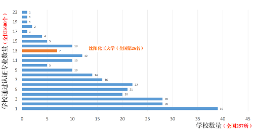 据悉,全国共计有257所高校1600个专业通过中国工程教育专业认证。2014年化学工程与工艺专业作为首个专业通过工程教育专业认证。随后学校高度重视此项工作,将工程教育认证的面向产出、以学生为中心、持续改进的三大理念深入贯彻到本科教学的每一个环节,经过多年努力,学校目前累计共计有13个专业通过工程教育认证,通过工程教育认证专业个数位居全国认证高校第26名。