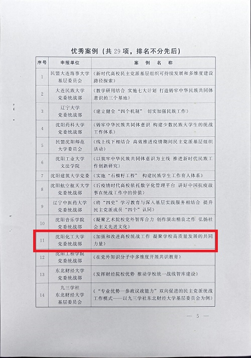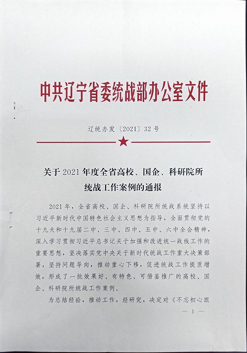 近日,辽宁省委统战部下发《关于2021年度全省高校、国企、科研院所统战工作案例的通报》,beat365官网申报的《加强和改进高校统战工作,凝聚学校高质量发展的共同力量》获评优秀案例。
