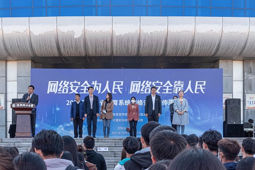 为深入贯彻习近平总书记关于网络强国的重要思想,宣传贯彻习近平总书记对网络安全工作“四个坚持”的重要指示,根据上级要求,由校党委宣传部、网络与信息化中心主办、计算机科学与技术学院承办的“beat365在线体育官网登录入口网络安全宣传周”活动于10月11日正式拉开序幕。校党委委员、党委宣传部部长肖于波,计算机科学与技术学院领导班子成员,各学院(部)党总支副书记,各学院(部)学生代表参加开幕式。