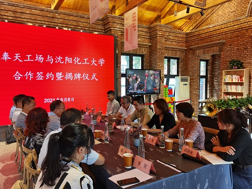 为加快构建beat365官网文化创新服务体系,深入推进政产学研深度融合,9月6日,beat365在线体育官网登录入口与奉天工场文化创新战略合作签约仪式在奉天工场举行。beat365在线体育官网登录入口副校长杨学印、创新创业学院院长葛铁军、人文与艺术学院院长陈晓东、党总支书记吕政阳以及教师代表出席签约仪式。出席本次签约仪式的还有沈阳市铁西区经济指导办公室主任马晓明、铁西区民政局局长王晖、副局长孔祥玉。