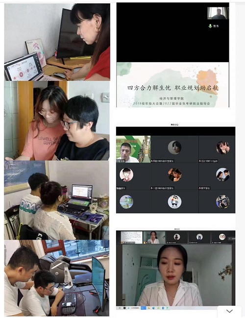 为了做好暑期疫情防控管理工作,加强家校联系配合,形成疫情防控教育合力,7月18日至7月19日,经济与管理学院组织召开以“疫心坚守 筑梦未来”、“四方合力解生忧 职业规划助启航”“家校共携手 同心育成才”为主题的线上年级家长会,辅导员老师分别介绍年级重点工作,对期末考试整体情况进行介绍,将防疫提示、出行安全、防灾防骗等相关通知传达给每一位学生和家长,嘱咐学生一定随时报告行程。