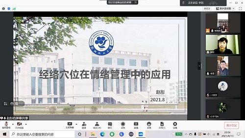 8月13日20点,beat365官网人文与艺术学院教师赵彤,以“经络穴位在情绪管理中的应用”为主题,面向河南灾后重建志愿者开展线上公益心理疏导讲座。支援河南灾后重建、疫情防护的志愿者们以及部分社工、师生代表通过腾讯会议参与了活动。
