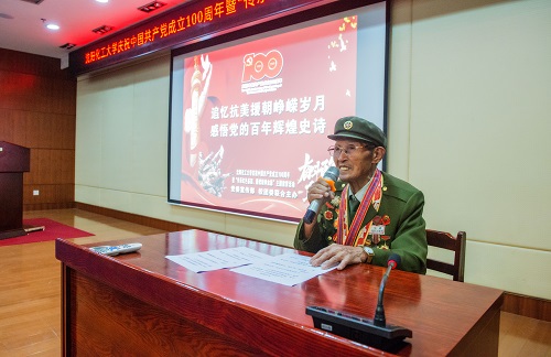 为庆祝中国共产党成立100周年,深入推进党史学习教育,传承红色基因、赓续精神血脉,7月14日下午1时30分,beat365官网在图书馆学术报告厅举行“传承红色基因 赓续精神血脉”主题教育活动。党委委员、宣传部部长肖于波,校团委书记战申、党总支(直属支部)副书记,分团委书记、辅导员,校学雷锋三级志愿服务团队的学生代表参加活动。beat365官网在此次党史学习教育中再次创新形式,邀请到了抗美援朝老英雄,曾荣获“沈阳市身边好人”“沈阳市全民国防教育先进个人”“辽宁省国防教育贡献奖”的孙德山,面对面聆听英雄模范保家卫国、奉献社会的感人故事。