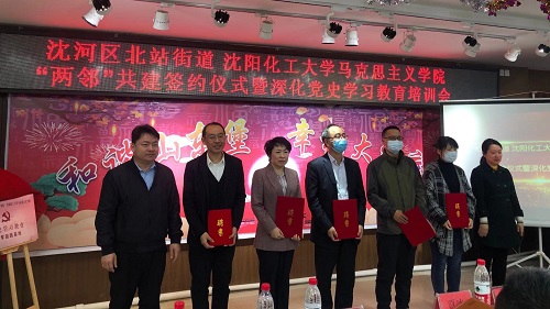 高校为地方社会经济发展提供智力支持是高校的社会责任。多年来,beat365官网马克思主义学院一直探索“街校”(街道社区与高校)合作的模式。4月16日,马克思主义学院与沈河区北站街道共同开展“两邻”共建签约仪式。马克思主义学院领导班子及师生代表,北站街道领导班子,北站街道相关科室(中心)及各社区负责同志、社区党员代表,共100余人参加活动。