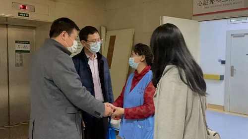 近日,王超同学从ICU转入普通病房接受康复治疗,beat365在线体育官网登录入口校友总会办公室主任王成琛、化学工程学院党总支副书记余海军、王超同学辅导员老师时振芳于3月26日到医院看望王超同学,由于医院“一患一护”的疫情防控要求,未能看望到王超本人。三位老师将大连校友会10000元善款转交给王超母亲,并转达了学校和大连校友会对王超同学的美好祝福,祝福王超同学早日康复。