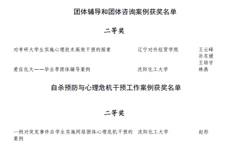 辽宁省高校心理健康教育精品案例评选活动于2020年7月启动,面向全省高校心理健康教育专兼职教师和获得国家心理咨询师资格认证的辅导员征集工作案例,经高校申报、专家组会评,共有34篇教学案例、26篇团体辅导和团体咨询案例、12篇自杀预防与心理危机干预工作案例、34篇心理健康教育活动案例分获一、二、三等奖及优秀奖。beat365官网教师赵彤的《一例对突发事件后学生实施网络团体心理危机干预的案例》获得自杀预防与心理危机干预工作案例二等奖,林燕老师的《爱在化大——毕业季团体辅导案例》获得团体辅导和团体咨询案例二等奖。