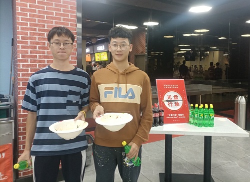 开展制止餐饮浪费“光盘换饮品活动周”活动。联合校团委于10月7日至13日举办了为期一周的制止餐饮浪费“光盘换饮品活动”。午餐时段,在学生食堂每个楼层的餐盘回收处,由校团委组织的志愿者—制止餐饮浪费监督员,为自觉“光盘”的前50名同学发放一瓶可乐或雪碧饮料。活动期间,共发放2100瓶饮品,每天有300名同学用“光盘”换取了饮品。活动得到了同学们的广泛欢迎,对促进同学们养成餐饮“光盘”的节约习惯起到了很好的推动作用。