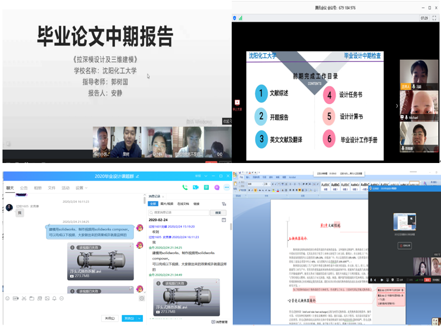 此次检查内容包括选题、开题、任务书、文献综述、外文翻译、指导、论文完成等情况。检查过程共分四个阶段,指导老师针对自己带的学生自查阶段、各检查小组对上交的材料进行检查阶段、学院根据情况进行抽查阶段、针对检查中的问题进行反馈整改阶段。在自查阶段,指导老师针对自己所带学生充分利用腾讯会议、QQ等线上软件平台,以线上汇报的形式对2020届本科生前期工作成果进行阶段性检查。同学应用平台进行就目前工作进度、下一步工作计划、存在的问题及应对措施进行了汇报。指导教师围绕学生的汇报内容进行提问,提出相应的指导意见。通过全程打开摄像头的方式,拉近了师生间的距离,整个中期汇报过程进行顺利,师生们在云端就毕业设计工作如何正常推进进行了有效地沟通。各检查小组针对自查阶段进行了抽检,抽查的教师共53人数和学生人数418人,分别占教师总数的72.60%和毕业生总人数的89.13%。从检查的结果看,虽然疫情阻隔了师生、生生的见面和相遇,但机械与动力工程学院的老师对此次毕业设计的过程和要求并未松懈,通过各类教学平台打开了毕业设计 “直播”云渠道,在大家共同努力下,我院毕业设计(论文)的进度和质量受疫情影响不大,完成基本情况良好。