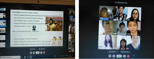 王立梅老师为19级研究生开设了《西方文明通览》课程。经过对线上学习平台和软件的广泛试用与精心比较,她选择了用企业微信实施预约上课、发布通知、进行直播授课,用学习通分享学习资料和管理学习过程。《西方文明通览》课程信息量大,王老师课前做了大量的准备,寻找优质教学资源,优化教学设计,制做内容丰富、形式多样的教学课件,提前上传电子版教材及参考书目,并向学生推荐多媒体素材,提供课前预习和课后拓展内容,引导研究生进行自主学习。虽然课堂教学环境与以往大不同,王老师尽力在网络直播课程中创设学生熟悉的课堂环境,保证与学生进行面对面般的交流和互动,通过课上组织学生做主题展示,鼓励学生课前做研究,课上表达交流、讨论分享;课后布置相应的任务让学生完成对课程学习内容的反思与拓展。选修《西方文明通览》课程的研究生一致认可王老师精心准备的教学内容和创设的互动课堂。王立梅老师说,这次疫情虽然打乱了以往的教学模式,但也给与了自己探索和实现外语研究生线上教学的一次难得机遇和提高教学水平的空间。