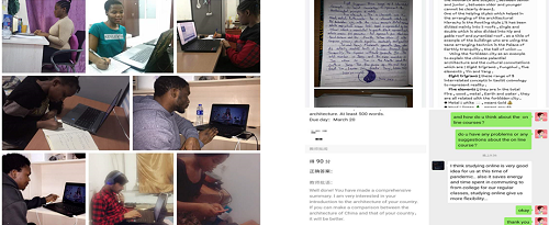 虽然有很多学生不在中国,存在时差以及网络不好等问题,但是大多数的学生都能克服各种困难积极参与到线上课堂中来,并且乐于与老师互动,保质保量地完成课程任务以及课后作业。线上教学对学生来说是非常新奇的事情,学习的热情丝毫没有减退。留学生反馈说,线上授课是非常好的措施,保证了疫情期间能够正常上课,甚至比正常线下课程学到的知识还要多,并且作业以及测试能够得到非常及时的反馈。吴海迪老师说,这次线上教学既是一种挑战,更是一个弥足珍贵的学习和提升自己的机会。希望留学生们在此次特殊的疫情期间,以最直观的方式了解中国文化、见证中国精神、感受中国力量。