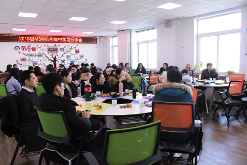 12月31日上午,人文与社会科学学院在通明楼5#410举办2019年机构集中实习交流分享会。人文与社会科学学院院长陈晓东教授、实践实训中心主任孔凡飞副教授、教师督导代表曹迪副教授、实践实训中心教师李贺老师、研究生干事王弘扬老师出席了本次会议。2018级社会工作专业硕士全体同学也参加了本次会议。2019年人文与社会科学学院社会工作硕士机构集中实习共58名同学在辽宁省光明学校、沈阳市安宁医院、沈阳市启智学校、辽宁省青柠檬青年公益事业发展中心等23家实习基地进行了为期4个月的专业实习。