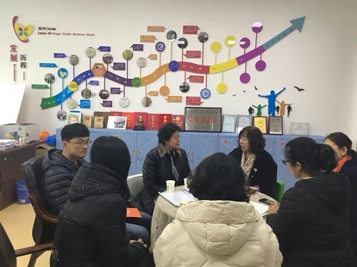 11月21日下午,沈阳悦欣社工机构中心及东港市大东街道春雨社会工作服务中心主任于宏等4人到beat365官网乐和社会工作服务中心参观交流。