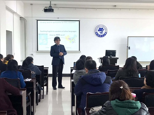 Speakers of Other Languages: How Do We Do It?》的专题学术报告,与全体教师讨论并分享如何提高英语教学的课堂效果。本次报告会由外国语学院院长佟玉平教授主持。