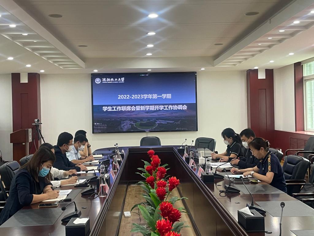 8月26日上午,2022-2023学年学生工作联席会暨新学期开学工作协调会通过线上线下相结合的方式召开,主会场设在校部第一会议室。党委副书记周志强出席会议,相关职能部门负责人及各学院(部)党委(党总支)副书记参加会议。会议由党委学生工作部部长李川主持。
