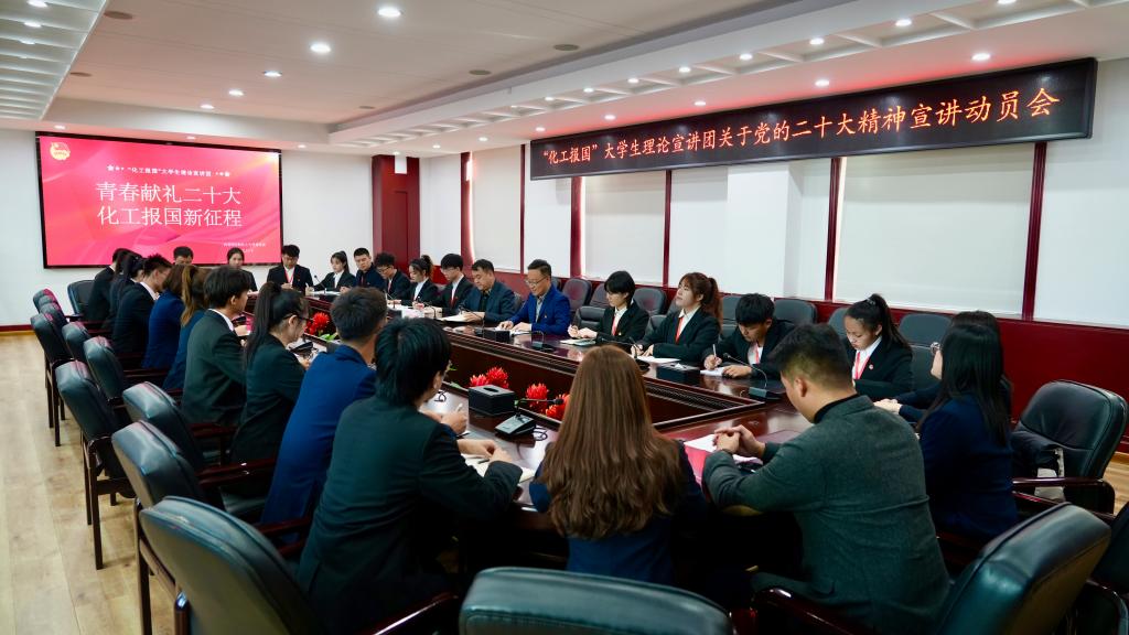 校团委兼职副书记、马克思主义学院青年教师赵磊,“化工报国”大学生理论宣讲团成员代表纷纷表示,一定会把学校党委指示精神落到实处,在今后一段时间里,将把党的二十大精神宣讲工作作为当前最重要的政治任务,发挥团员干部的先锋示范作用,以小切口入口,不讲大道理,用身边的人和事向全校青年传递党的二十大精神,用青年声音、青年视角,做好党的二十大精神的青年化阐释。