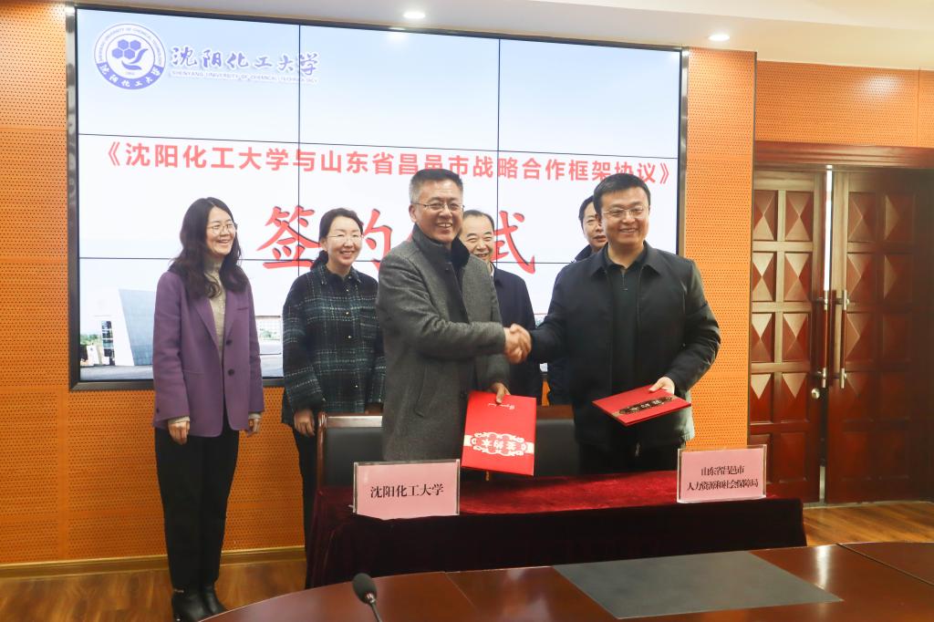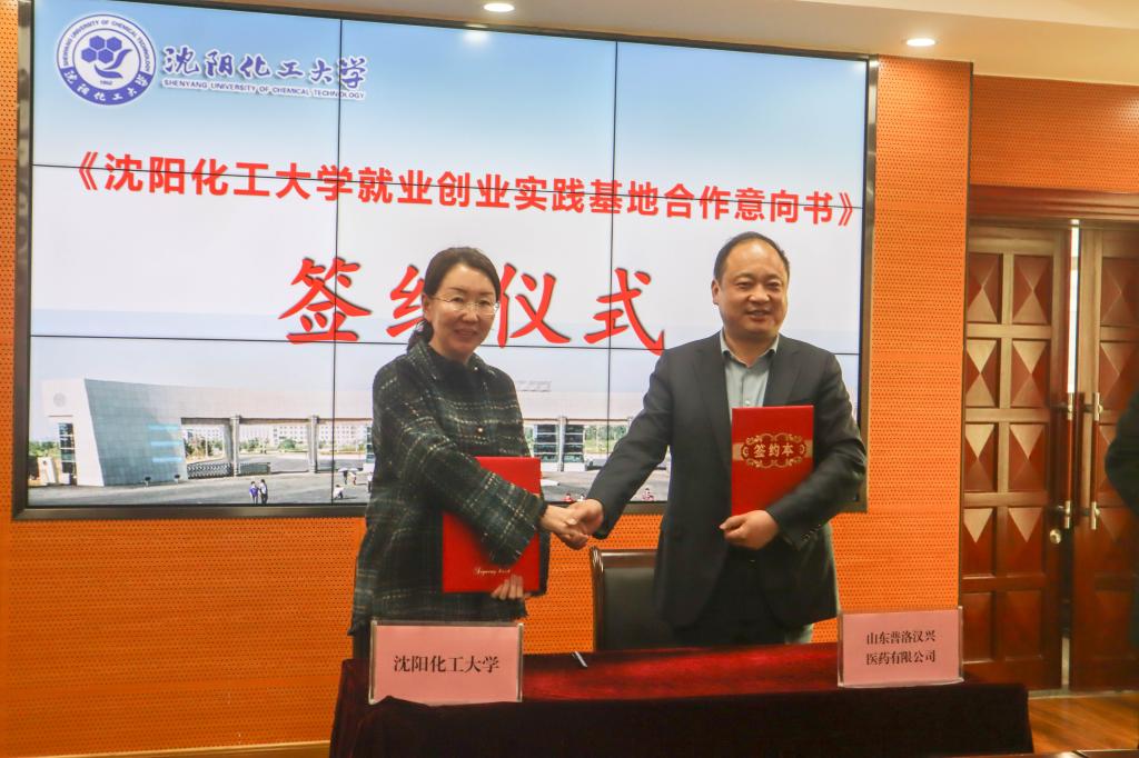 山东普洛汉兴医药有限公司行政人事部主任陈科献与人文与艺术学院副院长李漫红签订《beat365在线体育官网登录入口就业创业实践基地合作意向书》;山东省昌邑市人力资源和社会保障局党组书记、局长魏宾与beat365官网招生与就业处处长王成家签订《战略合作框架协议》。