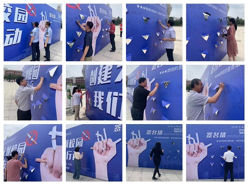 正通广场中央“创建无烟校园 我们在行动”签名墙和宣传展板吸引了众多师生目光,活动现场发布控烟倡议,呼吁广大师生从现在做起,不在室内、公共场所吸烟,共同营造健康、清洁、无烟的校园环境;宣传教育活动现场气氛热烈,学校师生积极参与承诺签名,参加活动的师生更深层次了解到吸烟的危害,纷纷表示会遵守控烟相关规定,积极履行控烟职责,共同为营造清新健康的校园环境而努力。