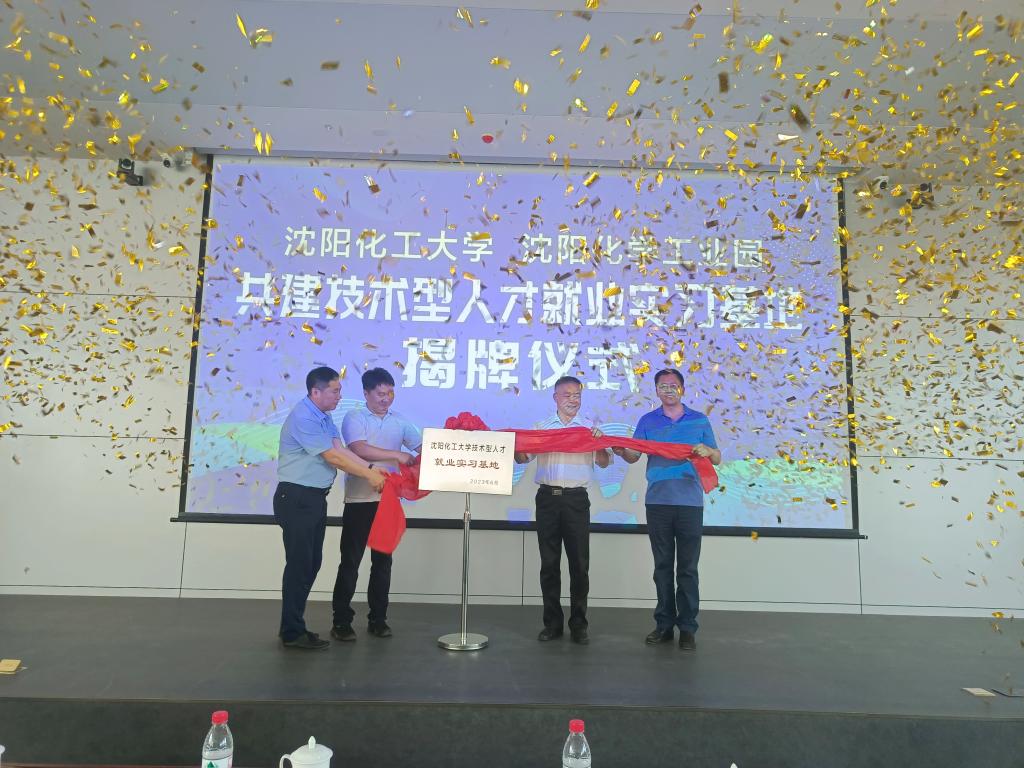 随后,举行beat365在线体育官网登录入口技术型人才就业实习基地揭牌仪式。金志浩副校长、王成家处长与经开区化工园管理办主任闫格、铁西区人社局人社事务服务中心主任田永峰共同揭牌,标志beat365在线体育官网登录入口与沈阳经开区化工园共建技术型人才就业实习基地正式成立。