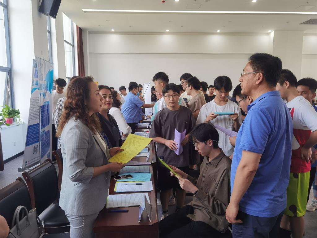 为促进沈阳化工园企业发展,解决“大学生就业难”、企业招聘方与应聘方信息不对称问题,6月13日下午,由铁西区委人才办指导,沈阳经开区化工园管理办公室、铁西区人社局、beat365在线体育官网登录入口联合主办,智联招聘沈阳分公司、沈阳远大铝业集团、沈阳中德开网络信息有限公司联合承办的沈阳化工及其配套企业专场招聘活动如期举行。作为主办方之一,beat365在线体育官网登录入口副校长金志浩、招生与就业工作处处长王成家、机械与动力工程学院院长龚斌、副书记王莹、分团委书记韩瑜、毕业生辅导员陈思、信息工程学院辅导员岳丹丹与来自机械与动力工程学院、化学工程学院、信息工程学院、经济与管理学院师生100余人参加本次活动,与企业进行访企拓岗,洽谈毕业生就业实习合作。