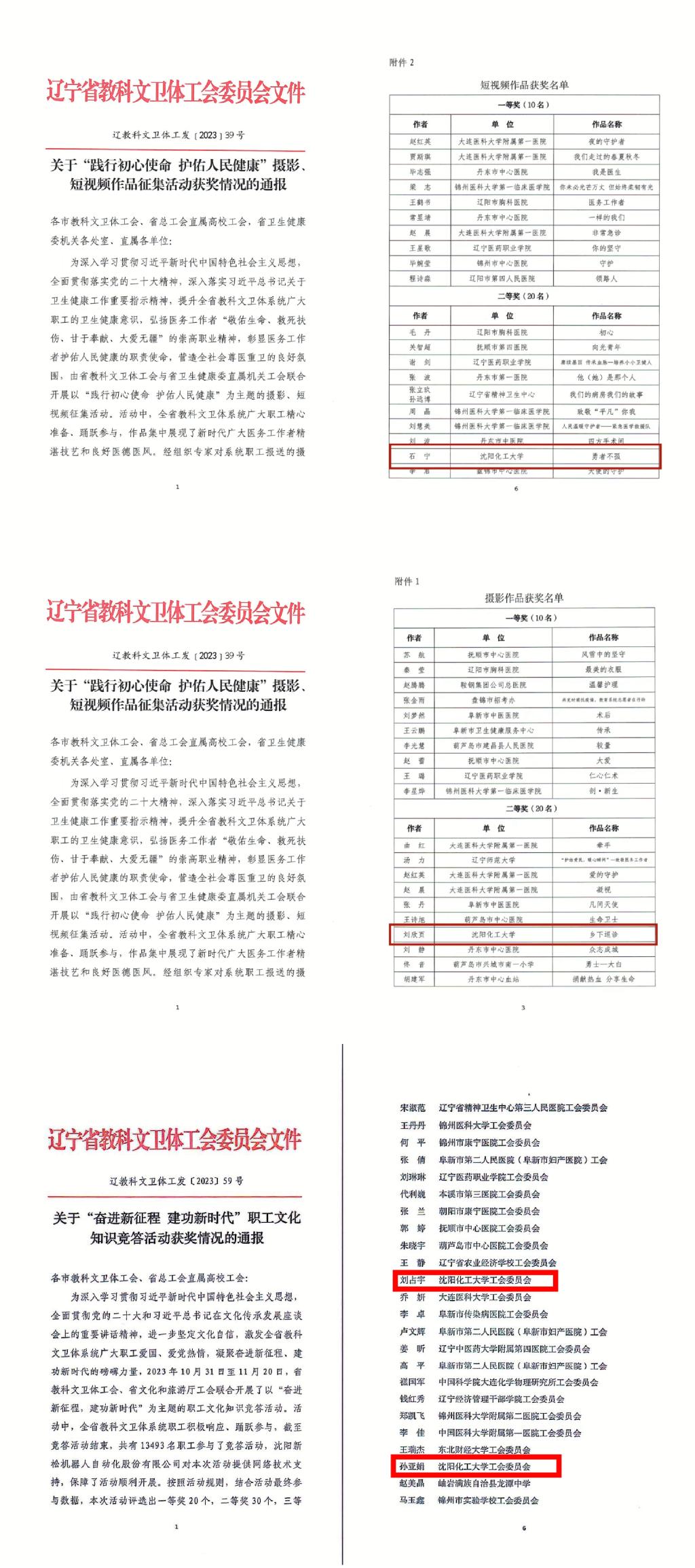 近日,beat365官网喜讯频传,beat365官网教工多人在省工会组织的多项比赛中获奖。王娜教授团队在省总工会直属高校教职工科技成果转化大赛中获得二等奖。在省总工会直属高校优秀教案评选活动中,孔晓光获得一等奖,鲍捷、苏勇获得二等奖,王立强获得三等奖。在“践行初心使命 护佑人民健康”摄影、短视频征集活动中,石宁获短视频作品二等奖,刘欣页获摄影作品二等奖。刘占宇、孙亚娟获得省职工文化知识竞答三等奖。
