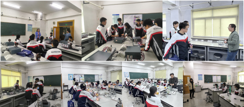 随后,学生们分成两组开展研学。第一组以“奥妙物理”为主题,参观大学物理实验室。第二组以“美丽化工”为主题,参观基础化学实验室、化工原理实验室。