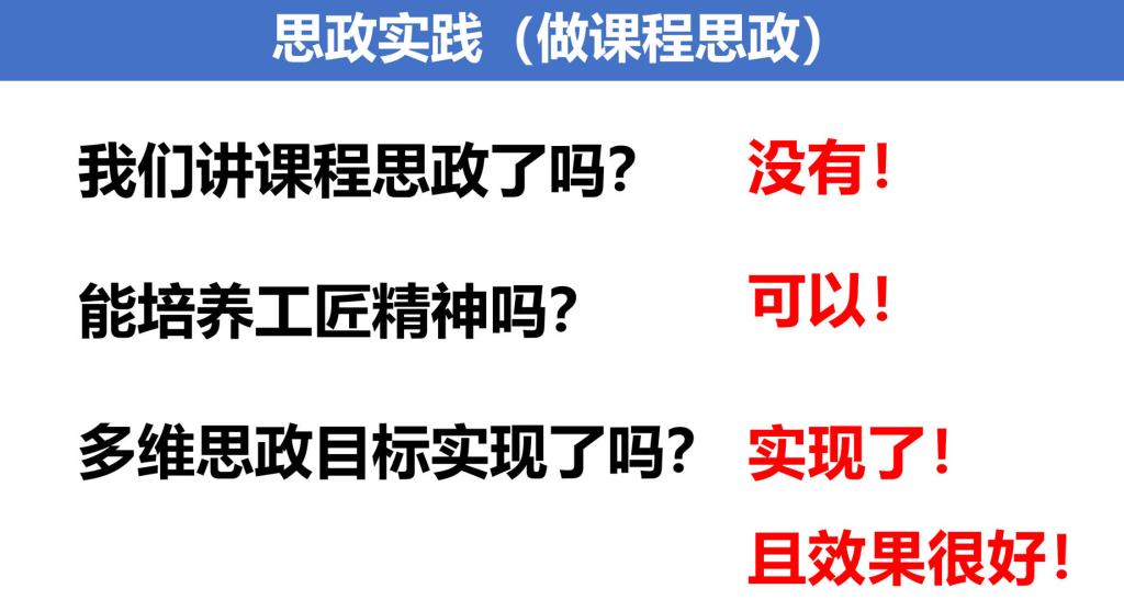 苏勇指出,要深入理解《高等学校课程思政建设指导纲要》的精神,并将其融会贯通到教学实践中。他解读了《纲要》对工学类课程要求的“培养精益求精的大国工匠精神“和“激发学生科技报国的家国情怀和使命担当”的内涵,并着重指出“培养”和“激发”的区别,并以教学实践说明了“培养精益求精的大国工匠精神”只靠“讲”课程思政是不够的,要通过合理设置教学环节,引导学生通过努力学习,内化这一课程思政目标。
