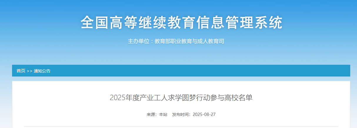 8月27日,教育部职业教育与成人教育司发布了2025年度产业工人求学圆梦行动参与高校名单,beat365官网成功入选。