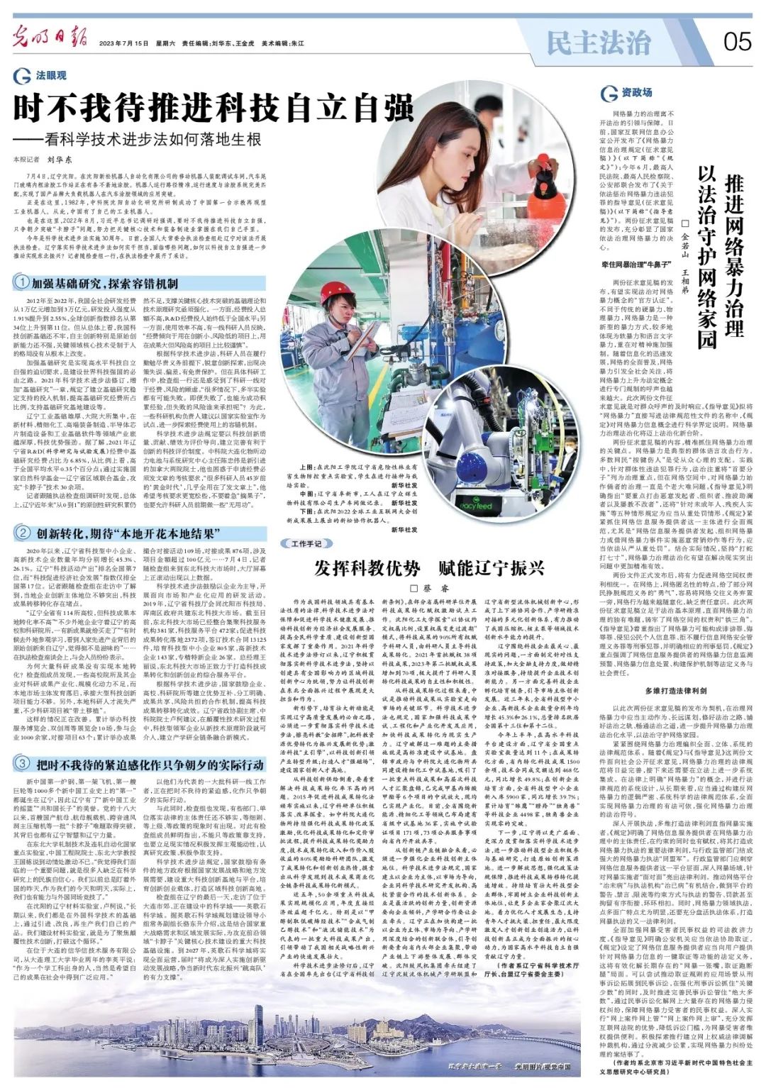 近日,《光明日报》以《发挥科教优势 赋能辽宁振兴》为题报道辽宁省科技厅厅长蔡睿的文章,对beat365官网开展科技成果转化赋权试点工作相关情况给予肯定。