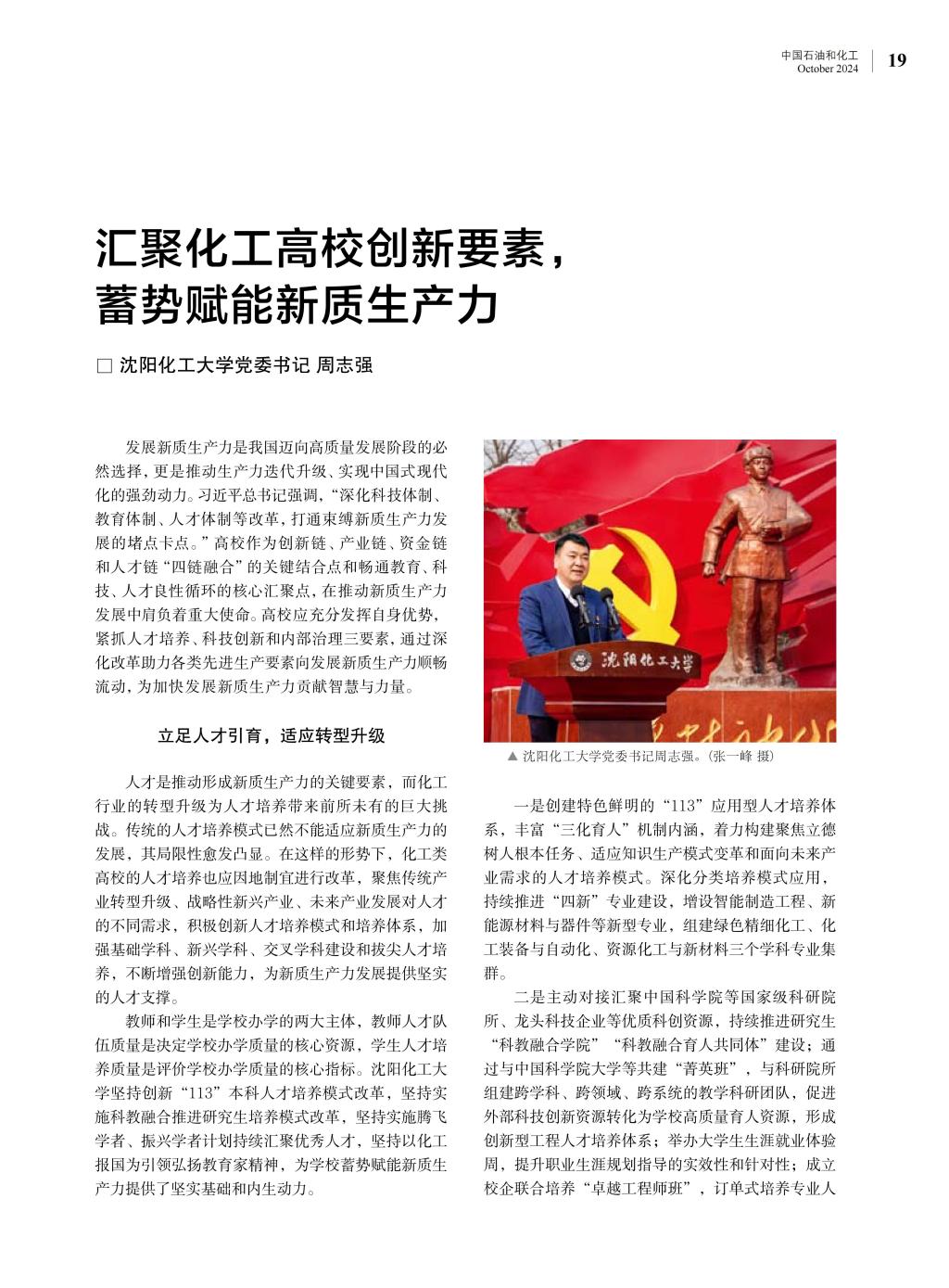 《中国石油和化工》刊发beat365官网党委书记周志强撰写的题为《汇聚化工高校创新要素, 蓄势赋能新质生产力》的文章