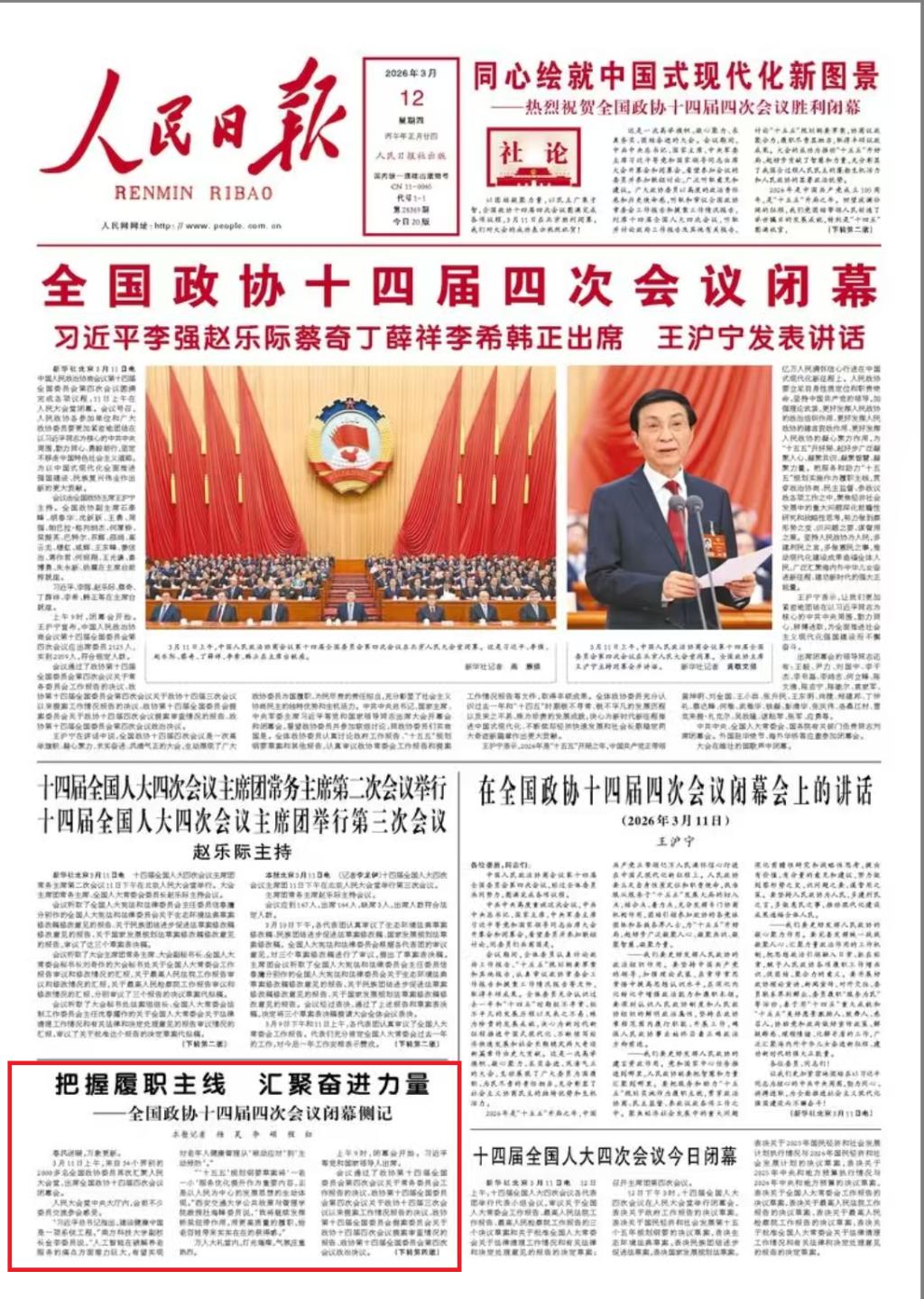 这是一次高举旗帜、凝心聚力、求实奋进、风清气正的大会,生动展现了广大政协委员为国履职、为民尽责的责任担当,充分彰显了社会主义协商民主的独特优势和生机活力。