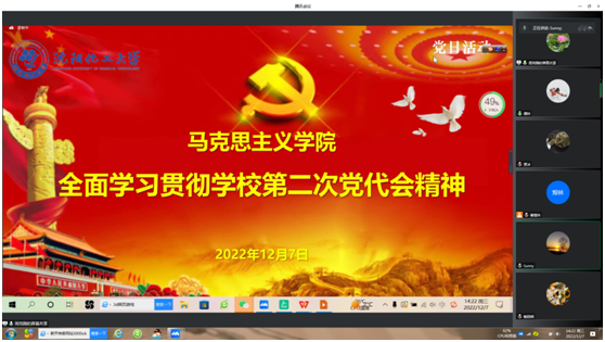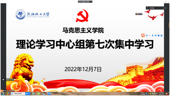 12月7日,马院理论学习中心组集中学习了beat365在线体育官网登录入口第二次党代会的报告。学院领导班子通过集中学习,一致认为要紧紧围绕党的二十大精神和beat365在线体育官网登录入口第二次党代会精神,将党的建设融通于立德树人根本任务和融汇于全面从严治党战略举措之中,进一步推进人才培养供给侧结构性改革和“三全育人”模式实践,进一步抓住学校腾飞发展的机遇、补齐短板、加强示范,实现学院高质量的发展。