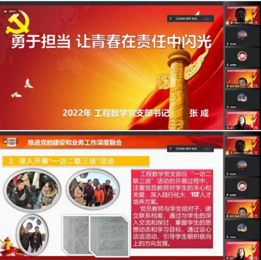 1228日,理学院党委召开党支部书记抓党建述职评议考核大会。学院党委委员、各党支部书记参加会议,会议采用线上方式进行。各党支部书记对2022年度的党建工作和业务工作进行总结汇报,查摆工作中存在的问题及原因,并对2023年度的支部工作进行展望。