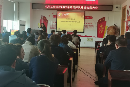 4月19日下午,化学工程学院在稚川楼310召开2023年师德师风建设工作动员大会。化学工程学院全体教职工出席本次会议,会议由党委书记战君主持。