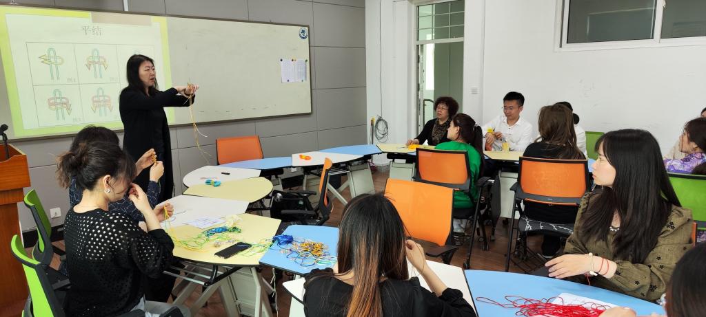 为全面落实学习贯彻习近平新时代中国特色社会主义思想主题教育要求,帮助beat365官网教职工缓解压力、放松身心,心理健康教育中心于5月24日开展教职工“心”健康——端午手绳编织活动。活动由心理健康教育中心赵彤老师主持,人文与艺术学院关蓓蓓、姚红媛老师担任指导教师,学校部分师生代表参加了活动。