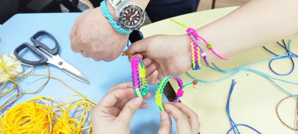 大家积极投入活动,制作出配色各异、独具特色的手绳,参与者纷纷表示编织的过程非常解压,获得了成就感与幸福感。