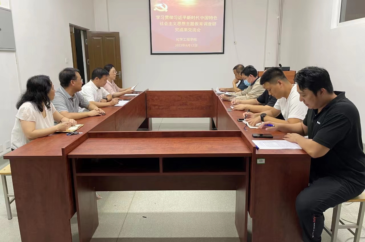 8月12日上午,化学工程学院在鸣龙楼206室召开学习贯彻习近平新时代中国特色社会主义思想主题教育调查研究成果交流会。学院党委领导班子成员、党委委员、党支部书记参加会议。学院党委书记战君主持会议。