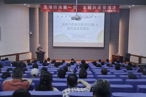 为实现家校联动,加强家校之间的交流协作,形成教育合力,共助学生的成长成才,9月7日下午2:00,经济与管理学院于碧帆楼304室举行2023级新生家长见面会。学院领导班子全体成员、教研室主任代表、全体辅导员及2023级本科生、研究生新生家长参加见面会。会议由新生辅导员王怀老师主持。