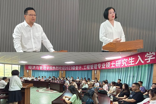 党委书记侯延风代表beat365在线体育官网登录入口经济与管理学院向23级全体非全研究生新生的到来表示诚挚欢迎。他希望同学们能够在经管学院清新、自如、平等、友好的学术环境中锻炼学术才能,实现人生理想。他表示,十分荣幸能够与23级全体非全研究生新生天涯海角相聚于此,并寄语新生将小我的发展与学院、学校的发展历程结合,共同谱写化大经管人的明日华章。经管学院有仁爱、敬业、博学的导师,也有求知、上进、踏实的同学,祝福所有与会新生汲取老师给予的无尽学术养分,收获同学之间的学途同窗情谊。他希望各位研究生尽快进入新角色,要珍惜时光、不负韶华,在勤学实干中夯实本领,在科研的征途上不畏艰难险阻,勇攀高峰,在人生的新阶段砥砺前行,努力成长为担负强国建设、民族复兴重任的主力军。