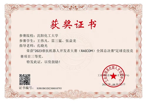信息工程学院孔晓光老师、李崇老师指导的学生团队,虽然首次参加该项赛事,但师生全力以赴,暑假不休,克服场地受限困难,多次到兄弟院校进行现场调试,最终在“足球竞技赛道”项目中脱颖而出,以全国总分第一的好成绩获得国家一等奖,同时获得国家二等奖和国家三等奖各一项。