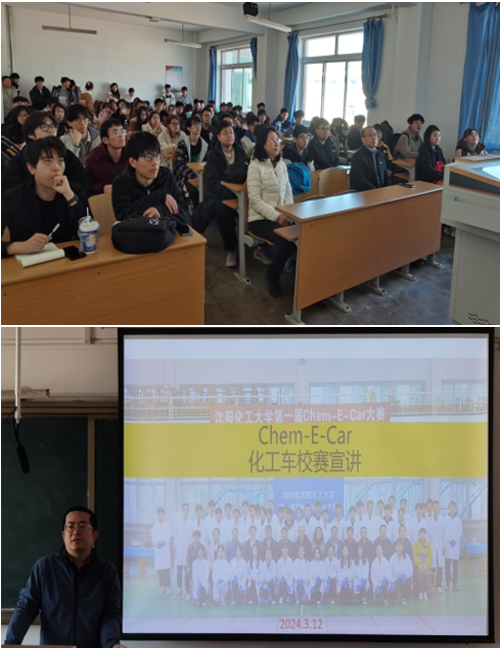 为践行CDIO项目式教学,推动科教融合协同育人,同时营造浓厚的学科竞赛氛围,帮助学生认识学科竞赛对于人才培养的重要意义,3月12日中午,化学工程学院在景唐楼506教室举行2024年Chem-E-Car竞赛宣讲会暨校赛动员会。学院党委书记战君、副院长李双明以及竞赛指导教师张本贵、姜仁政和秦增明出席活动,来自化学工程学院、机械与动力工程学院、信息工程学院、环境与安全工程学院10余个专业的近百名本科生参加了宣讲会。