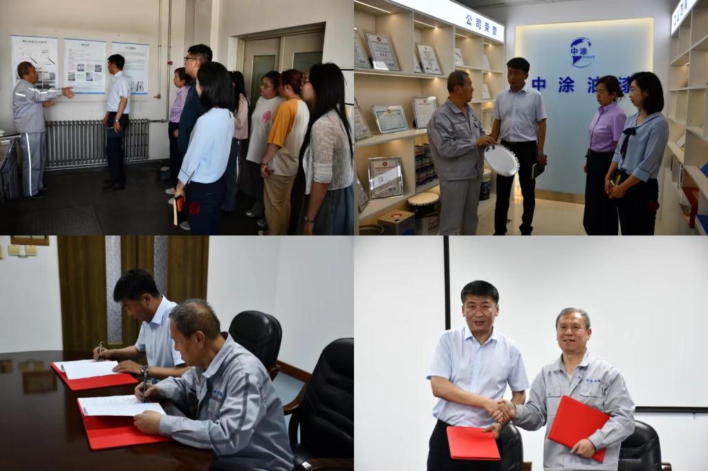 李文泽一行首先到访中涂油漆(沈阳)有限公司,董事长周建民热情接待并带领访企团队参观了企业,就企业的发展历程、业务领域、企业文化、经营情况及用人需求等方面对公司进行了详细介绍,让同学们对企业有了全新的认识和了解。随后双方进行了座谈,李文泽向企业介绍了理学院的专业设置、办学特色、人才培养和招生就业等情况,周建民表示愿与理学院保持长久合作,为理学院在校生、毕业生提供实习实践的机会和待遇优厚的就业岗位。校企双方代表签订了就业实习基地协议。