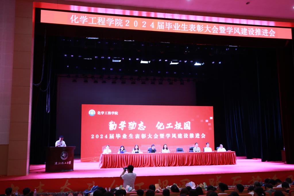 6月17日下午,化学工程学院在大学生活动中心举办“勤学励志,化工报国”—2024届毕业生表彰大会暨学风建设推进会。党委学生工作部部长孟野、党委研究生工作部部长杨海霞、教辅党总支书记林艳新、招生就业处处长王立刚、化学工程学院党政领导班子、各教研室主任、全体辅导员老师、受表彰的毕业生、在校生代表、家长代表共同出席本次大会。会议由学院党委副书记孙晓静主持。