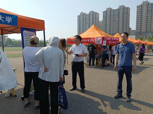 两位老师向家长和考生分发宣传资料同时,积极推介化大的历史沿革、师资力量、教学设施以及科研成果。此外,他们还介绍了学校的招生政策、录取标准和奖学金政策等,帮助考生更好地了解学校的录取要求和优惠政策。就学生们关心的就业前景、专业选择等问题进行了耐心细致的解答,让考生对beat365在线体育官网登录入口有了更深入的了解。
