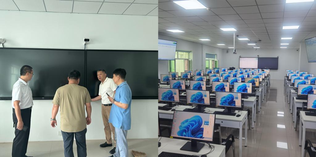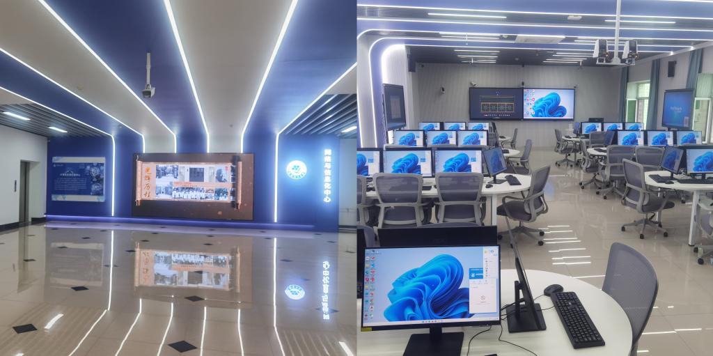 目前,升级后的计算机应用实践中心已焕然一新。中心内配备了7台超融合架构服务器、一间智慧录播教室、两间VDI融合云桌面教室、三间TCI云桌面的利旧教室以及一套LED全彩电子屏。此外,所有房间均完成了静电地板、吊棚等装饰装修工程,营造了一个舒适、安全、高效的学习环境。