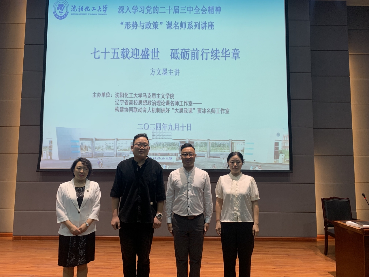 为认真学习贯彻党的二十届三中全会的会议精神,9月10日,由马克思主义学院、辽宁省“构建协同育人机制讲好‘大思政课’贾冰名师工作室”主办的“形势与政策”课名师系列讲座第二讲在碧帆楼304报告厅开讲。本次讲座邀请航空工业首席技能专家,大国工匠、正高级工程师,钳工首席技师方文墨作了题为《改革的实践续篇 现代化的时代新篇》的专题报告。校团委书记战申、学生团员代表、化学工程学院2023级学生和马克思主义学院师生代表近400人参加了讲座。