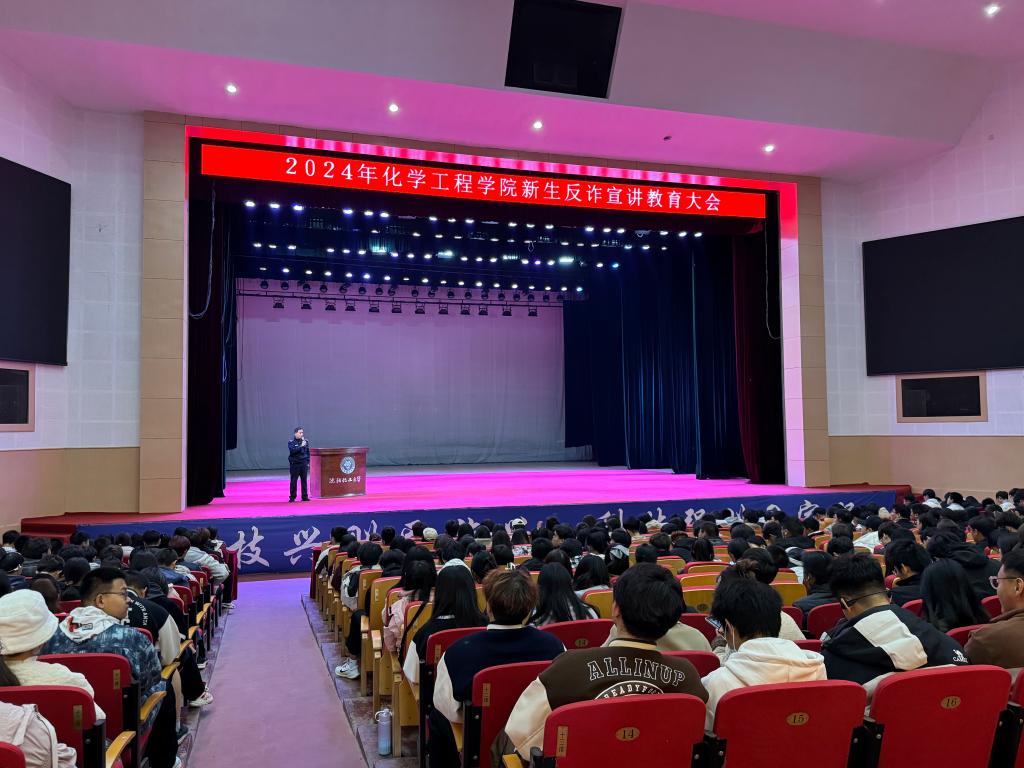 为进一步提高新生的安全意识和防骗能力,预防和减少诈骗事件发生,保护学生的人身财产安全,化学工程学院于10月30日召开2024级新生反诈宣讲教育大会。本次大会由西三环派出所副所长代长岭担任主讲,学院全体2024级本科生、研究生、博士生参加教育会。会议由2024级本科生辅导员穆鹏丞主持。