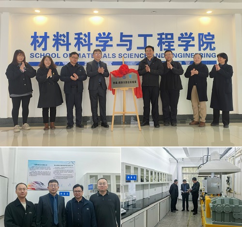 李云龙和李国强共同为“懋通-朗赛夫”联合实验室揭牌。该联合实验室将用于支持材料学院实验教学需求和实验原材料出入库的智能化管理,满足学生专业实验、毕业环节及工程实践的需要,助力材料学院进一步探索材料工程应用型人才培养。