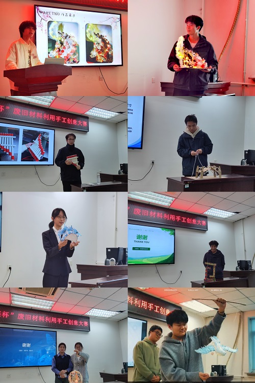比赛从10月10日开始启动,共有29组作品参赛。经过22位老师和学生评委评选,共选出14组作品进入决赛。在决赛现场,5位评委从作品创意、材料利用率、答辩展示及PPT制作等多角度,对作品进行评选,最终确定出一等奖1组,二等奖3组,三等奖6组,优秀奖4组。